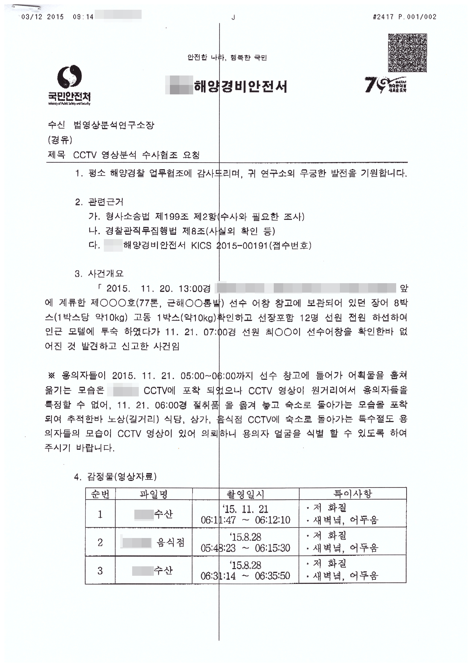 **ÇØ¾ç°æºñ¾ÈÀü¼ - CCTV¿µ»ó ºÐ¼® Áö¿ø