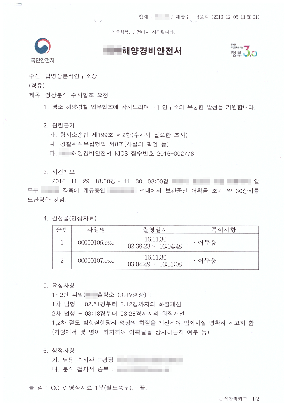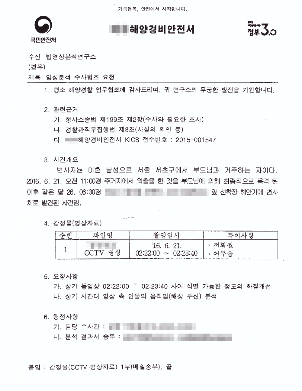 **ÇØ¾ç°æºñ¾ÈÀü¼ CCTV¿µ»ó »ç°í°æÀ§ ºÐ¼® Áö¿ø