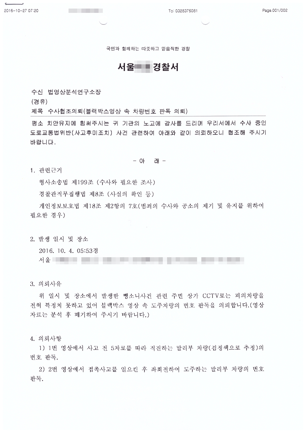 **°æÂû¼ CCTV¿µ»ó -Â÷·®¹øÈ£ ºÐ¼®