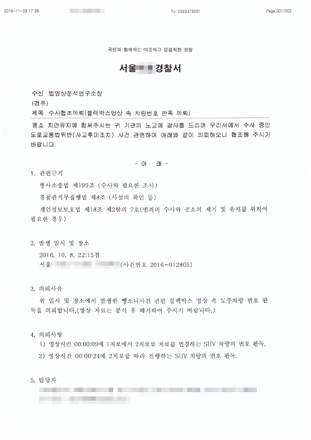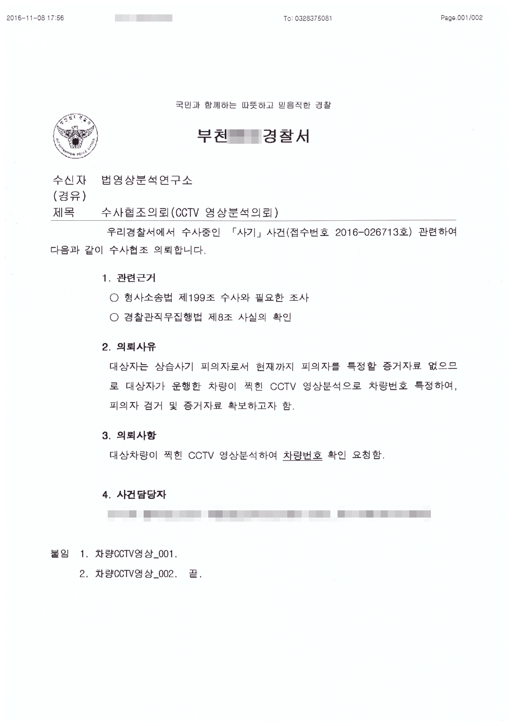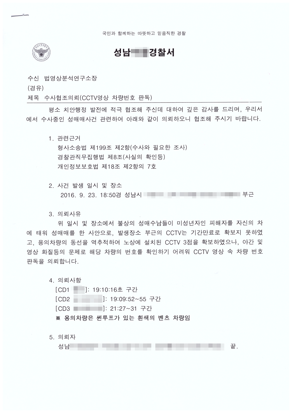 **°æÂû¼ CCTV¿µ»ó ¿ëÀÇÀÚ ÀλóÂøÀÇ ºÐ¼®