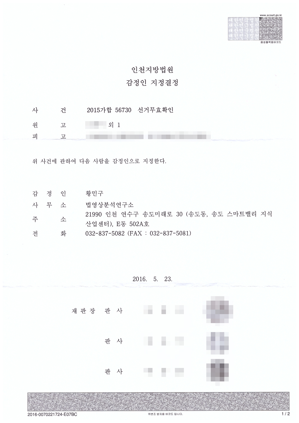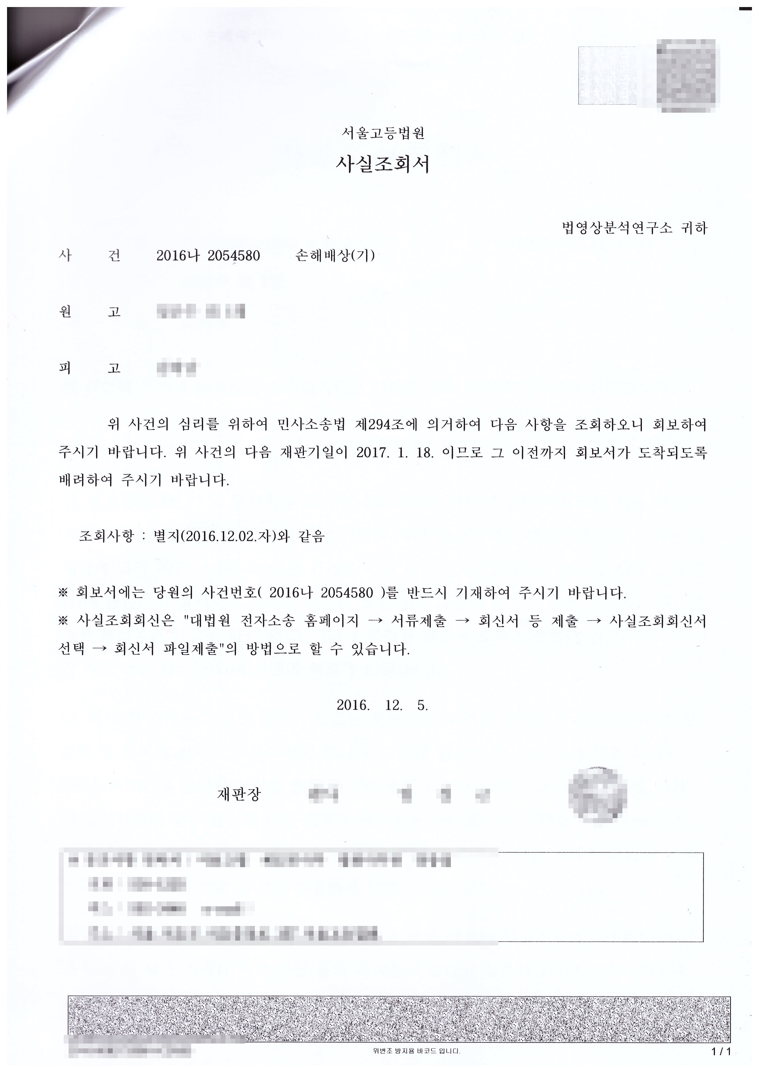 ´ëÀüÁö¹æ¹ý¿ø 2016°í´Ü2326 - »çÁø À§º¯Á¶ ºÐ¼®