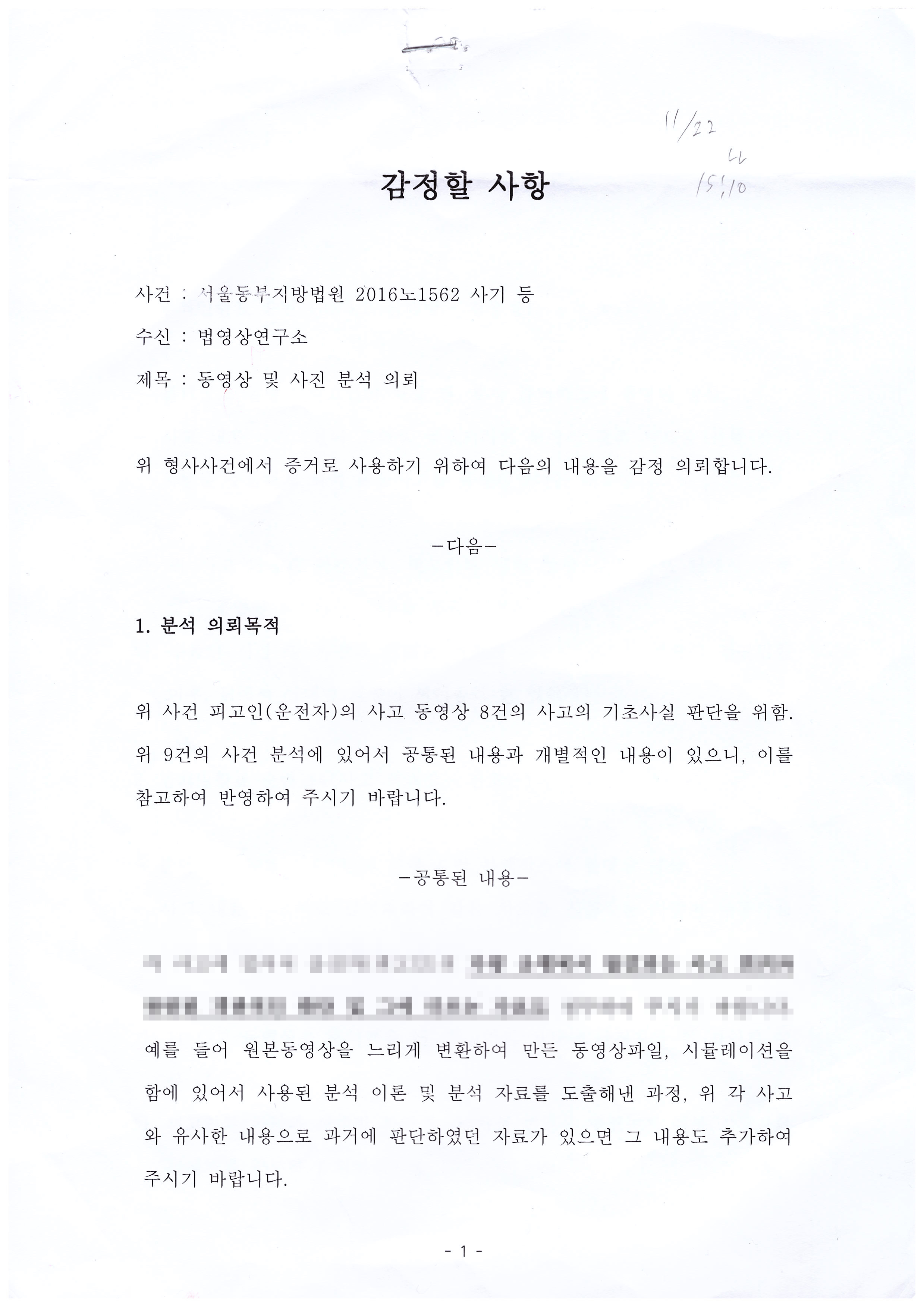 º» ¿¬±¸¼Ò¿¡¼´Â CCTV¿¡ ±â·ÏµÈ Àå¸éÀ» ¹ÙÅÁÀ¸·Î Á¤È®ÇÑ »ç°í °æÀ§¸¦ ¿µ»ó󸮸¦ ÅëÇØ ºÐ¼®ÇÏ¿´À½