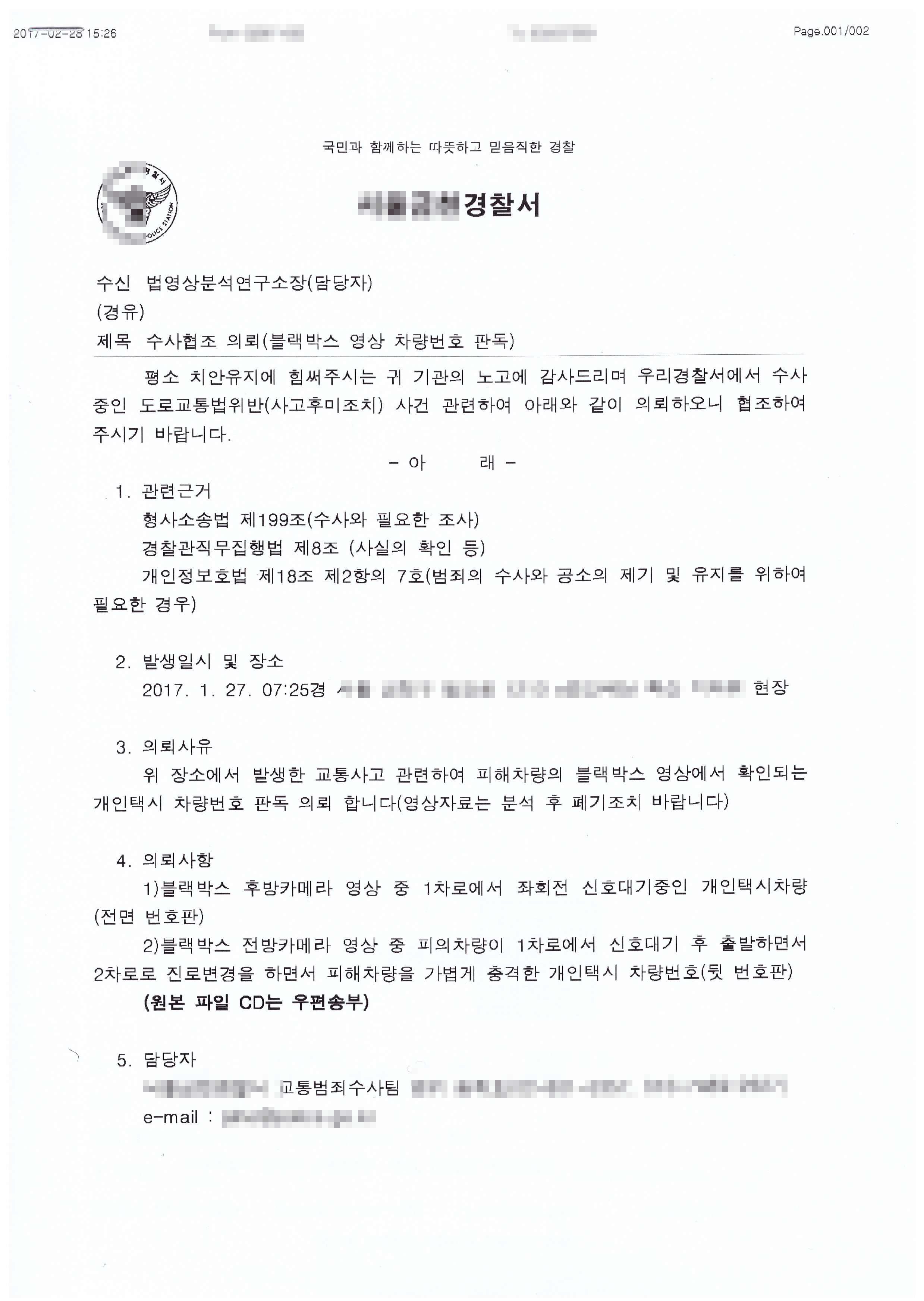 º» ¿¬±¸¼Ò¿¡¼´Â ºí·¢¹Ú½º¿¡ ±â·ÏµÈ ¿µ»óÀ» ºÐ¼®ÇÏ¿© ¿ëÀÇÀÚ Â÷·®ÀÇ Â÷·®¹øÈ£ ÆÇµ¶À» ÁøÇàÇÏ¿´À½.