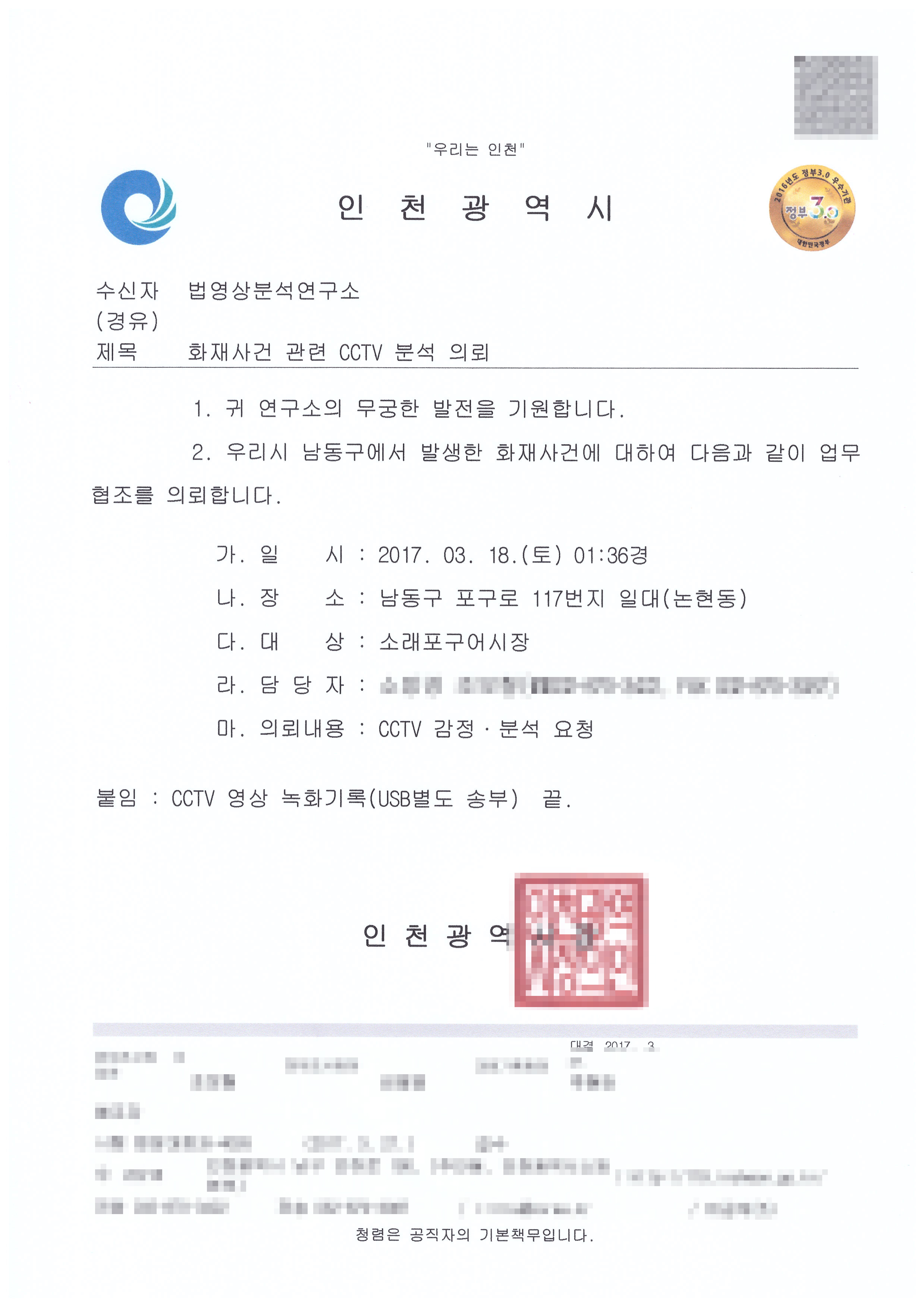 ÀÎõ½Ã ¼Ò·¡Æ÷±¸ ¾î½ÃÀå ÈÀç»ç°Ç CCTV¿µ»ó ºÐ¼® Áö¿ø