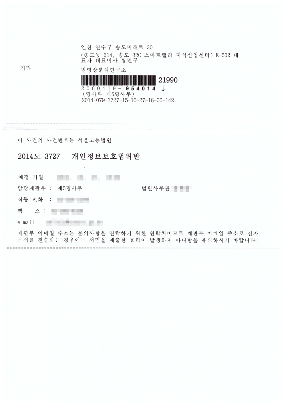 ¼¿ï°íµî¹ý¿ø (2014³ë 3727 °³ÀÎÁ¤º¸º¸È£¹ýÀ§¹Ý)-¿µ»ó..