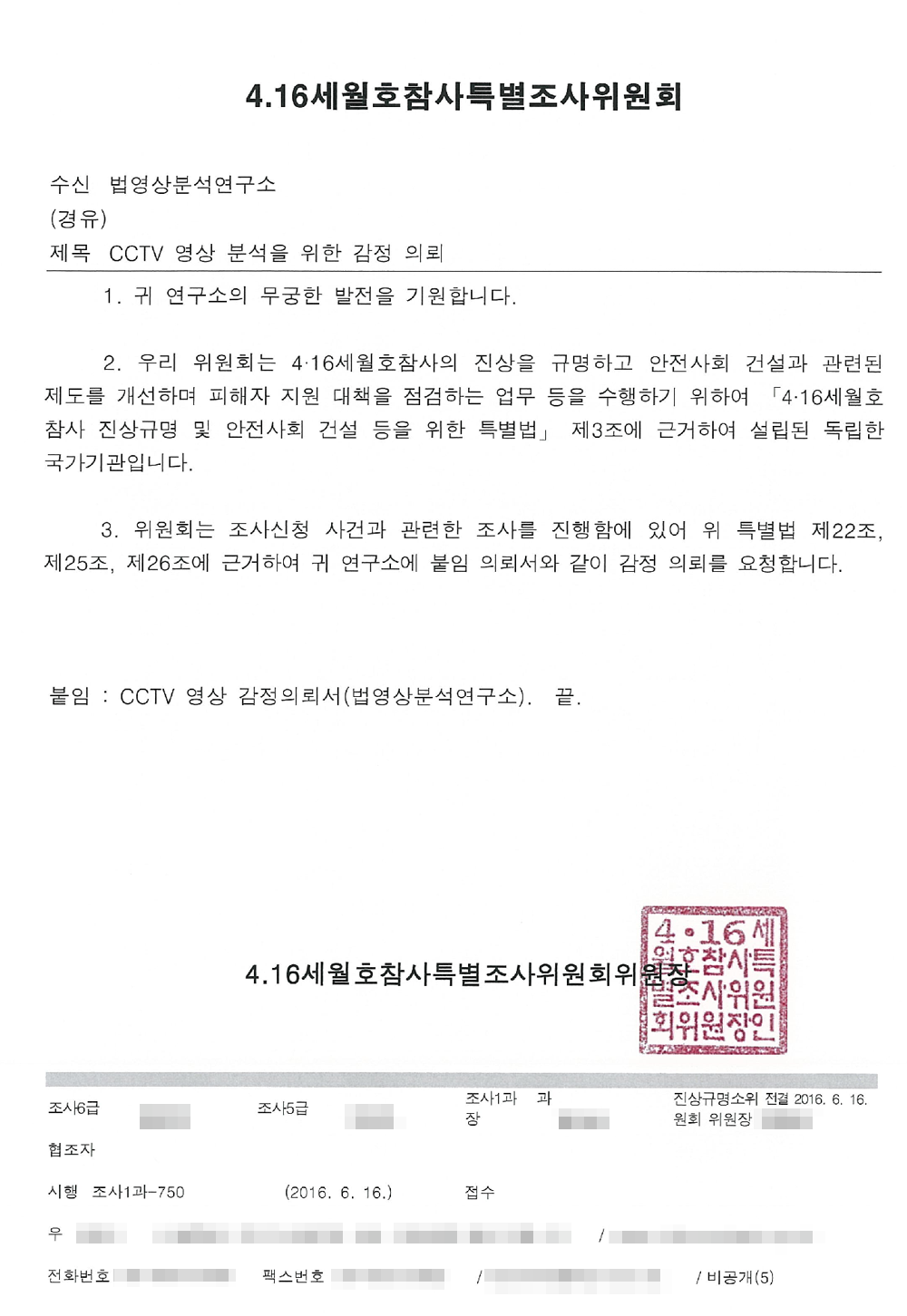 4.16¼¼¿ùÈ£ Âü»ç Ưº°Á¶»çÀ§¿øÈ¸ DVR ¿µ»ó ºÐ¼®